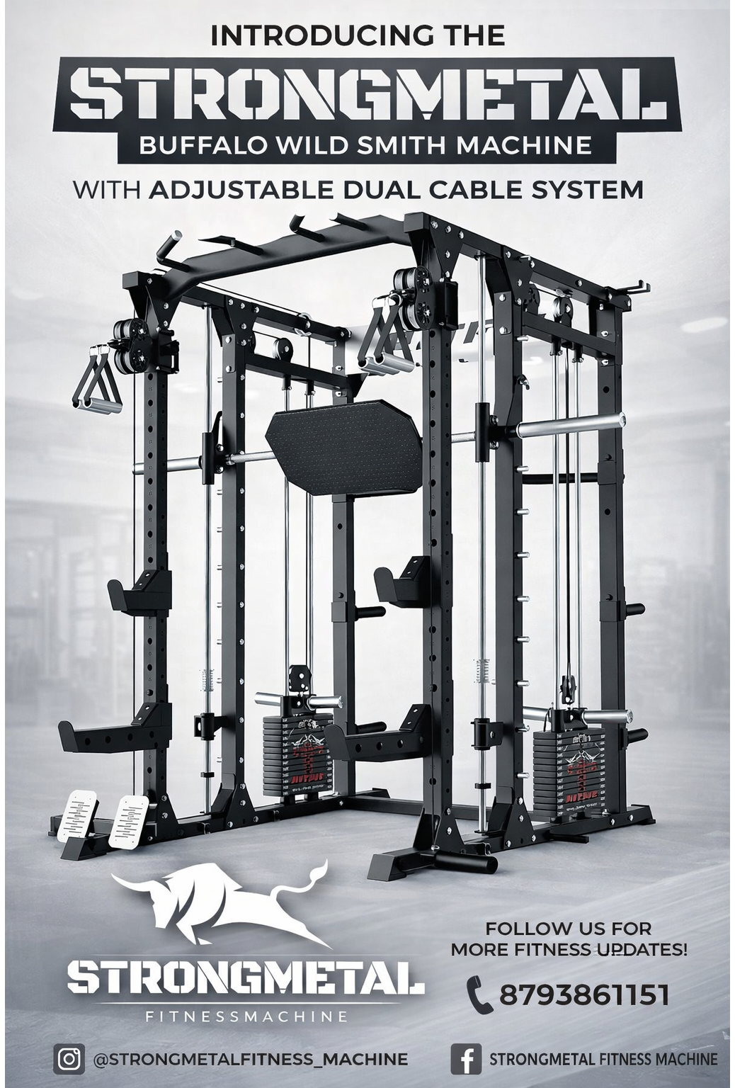 Upgrade your gym with the Strongmetal Buffalo Wild Smith Machine with Adjustable Dual Cable System — built for power, performance, and durability.